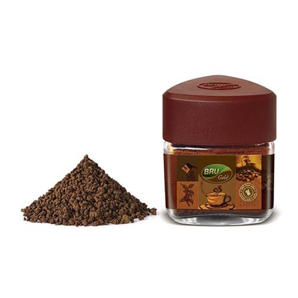 • Bru Gold Caramel delivers a harmonious balance between the invigorating taste of freeze-dried coffee and the enchanting flavour of buttery caramel