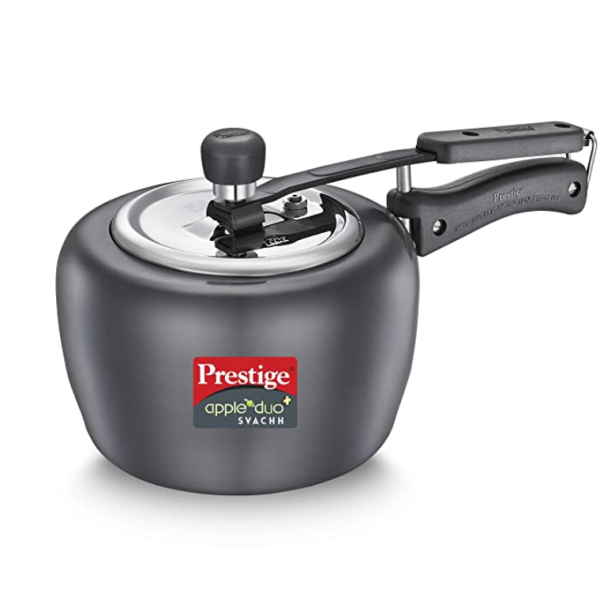 • The Nakshatra Plus Hard Anodised Svachh Pressure Handi is designed to last longer and comes with a unique lid that contains any spillage that might occur during the course of cooking and prevents the messy liquid from dripping down.