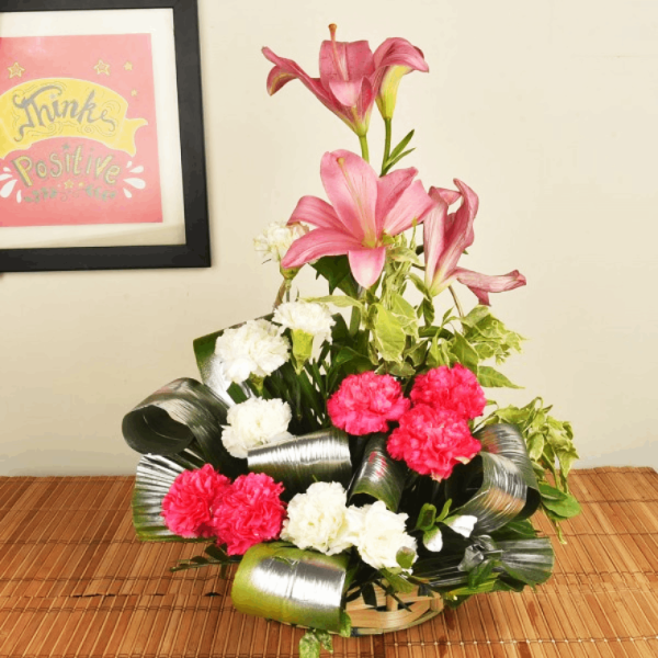 Send best wishes and love with this classic arrangement of roses in different tones of pink. Splashed with greenery, the roses in the flower pot look simply enchanting. Whatever can be the occasion, roses are a timeless choice for showing your love-filled emotions.