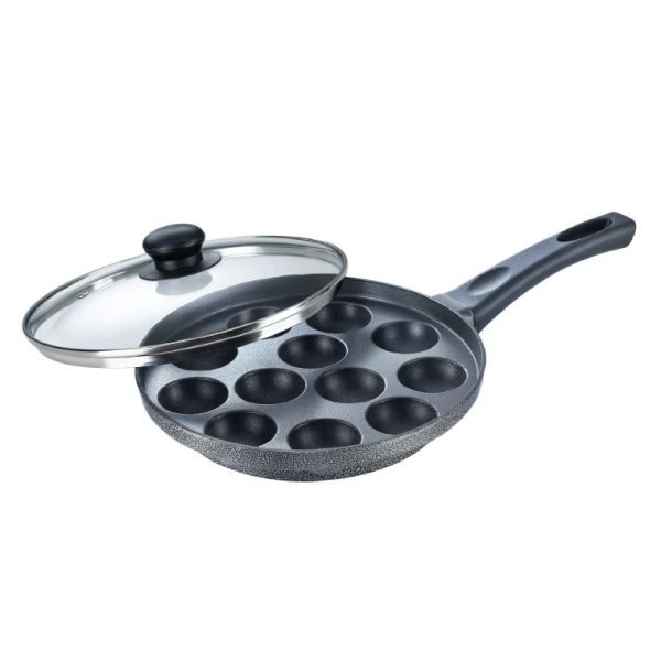 Material: Alumunium; Size: Paniyarakkal 240 mm; Base type: Gas Stove Compatible; Base thickness: 3; Included components: Paniyarakkal (1U); Colour: Black. Lid Included: Yes