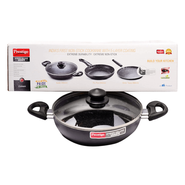 • This cookware set contains a frying pan- 240mm Dia, Kadai 240mm Dia, Omni tawa 280mm Dia