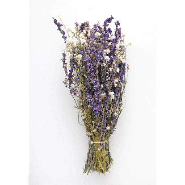 A true botanical beauty that invites the feeling of nature into your home, this stunning bouquet of dried florals features lavender purple larkspur wildflowers and white mini daisies. The best part? It’s vase ready! These naturally beautiful and unique flowers were grown and arranged on a small flower farm in Mexico.