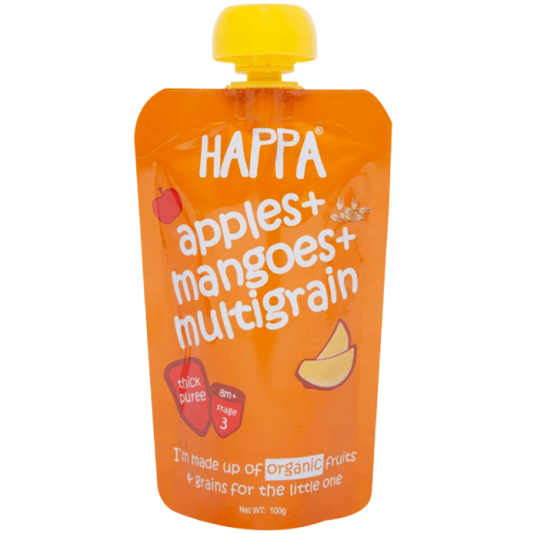 • SWEET POTATOES+MANGOES+PEARS PUREE: Grr! Is that your little tummy growling? Hello there, I am Happa's yummy-licious trio of three tasty foods - sweet potato, mango and pear! My taste is so good that once you try me, you won't stop smacking your lips. I was made safely, simply and carefully just like homemade food.