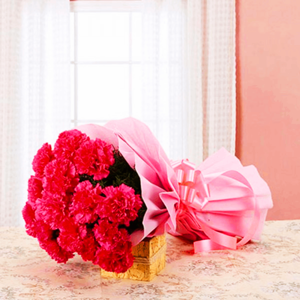 Pink color signifies caring, compassion and love. The color also associates with giving and receiving care. If you feel the same for someone, then this group of 20 pink carnations pink color paper packing is surely going to make the day of your loved one. Have a blast with these bright full pink carnation’s bouquet.